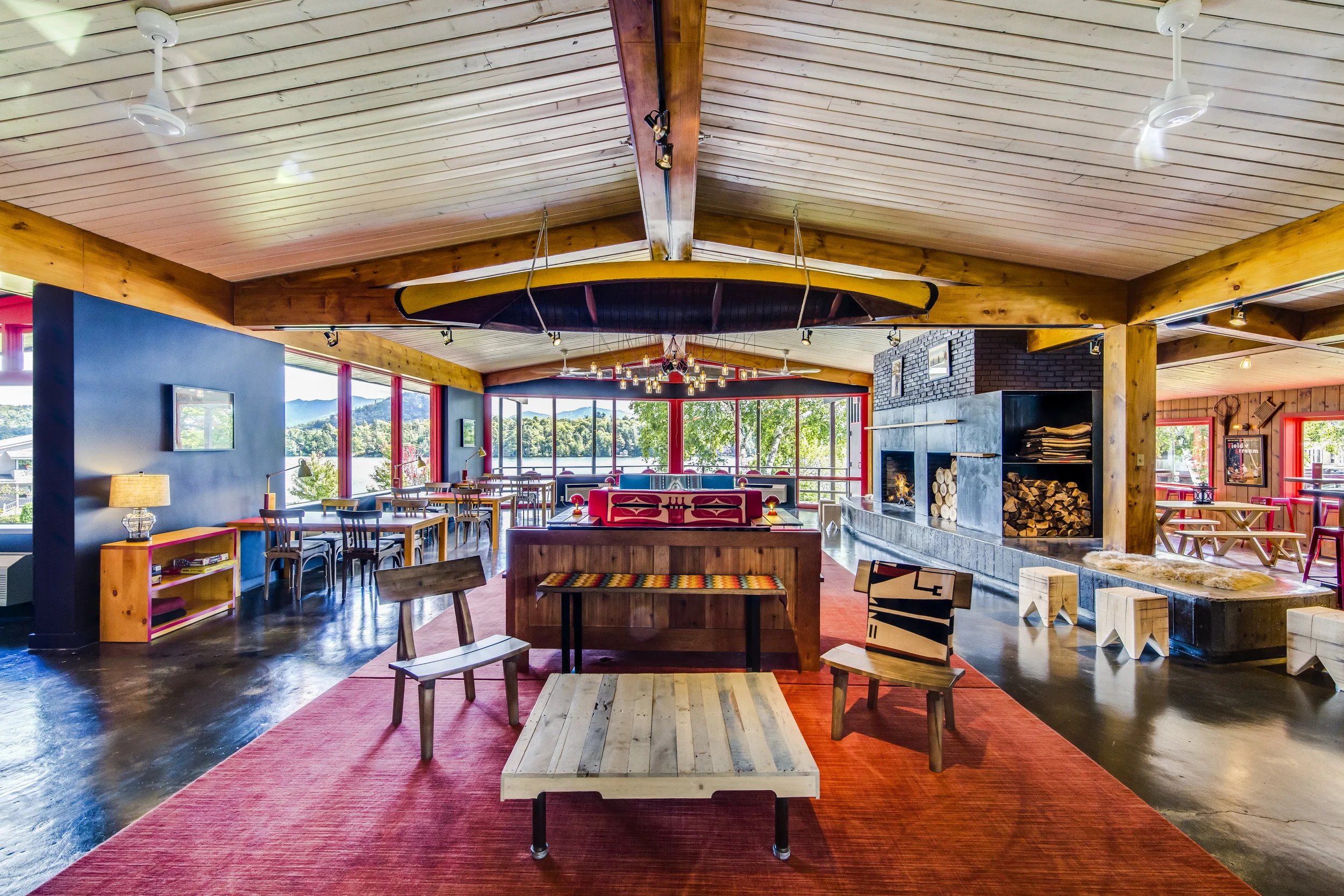 The project combines interior renovation with a full rebranding effort, drawing from the Adirondack Great Camps and the visual language of mid-century American motor inns. The work reorganizes the hotel as a durable, contemporary lodging environment rooted in local context.