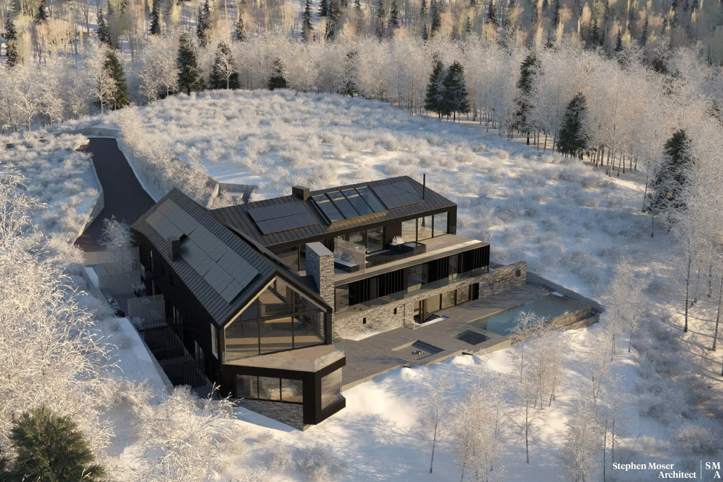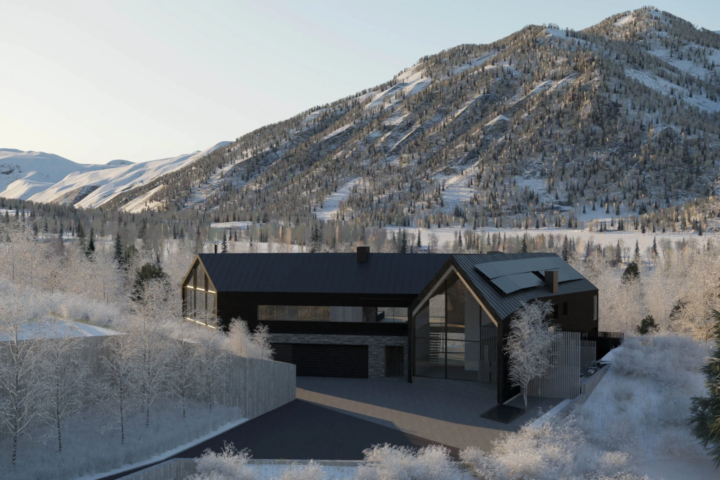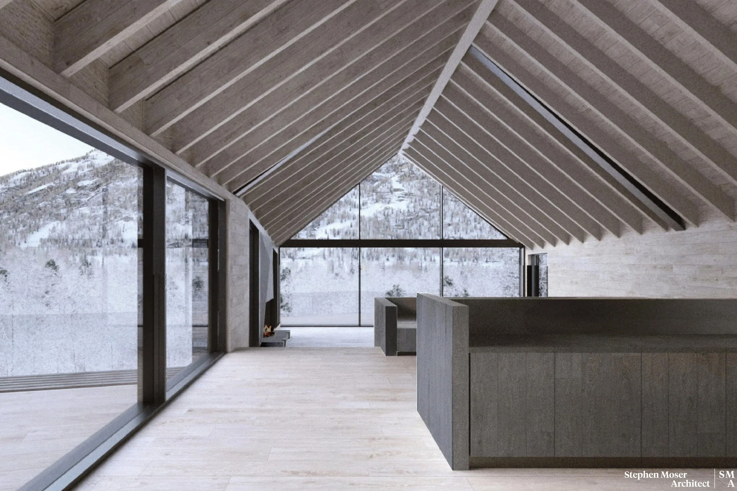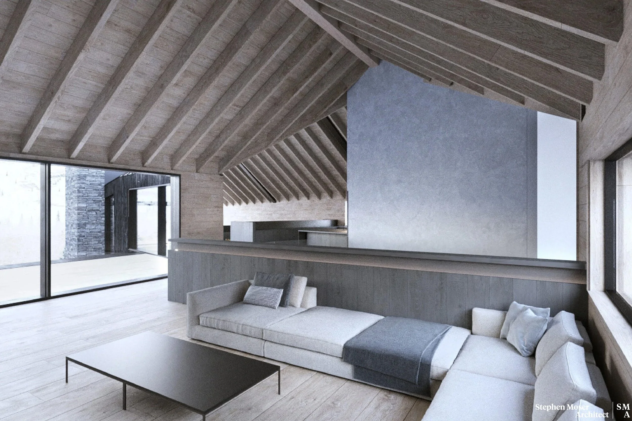 Set within an alpine environment, Lot 4 is a six-bedroom residence shaped by a thickened building envelope, where wall assemblies and openings regulate light, privacy, and thermal performance.