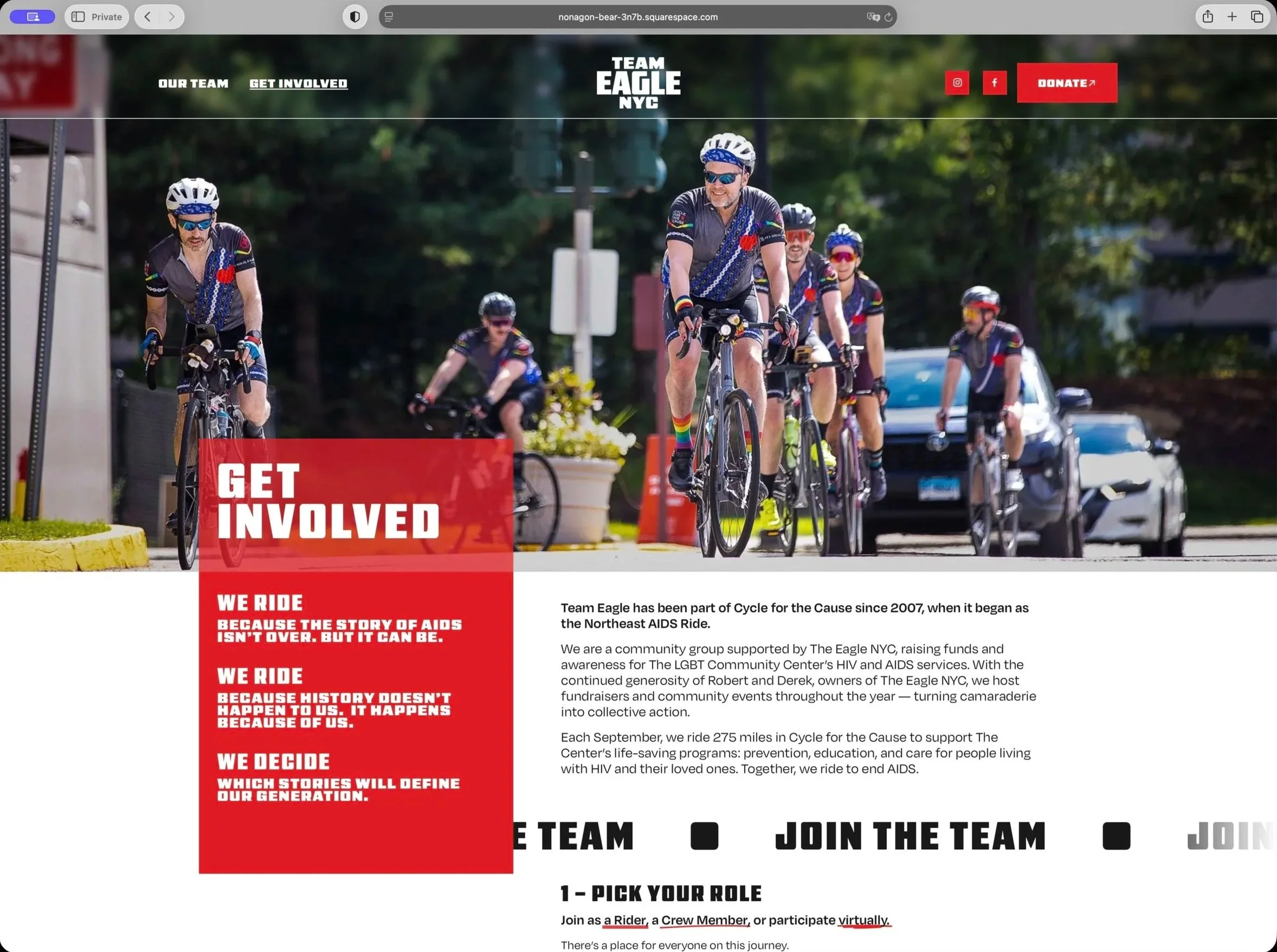 Team Eagle NYC is a community-driven cycling team supporting Cycle for the Cause, raising funds for HIV and AIDS services at The LGBT Community Center in New York.